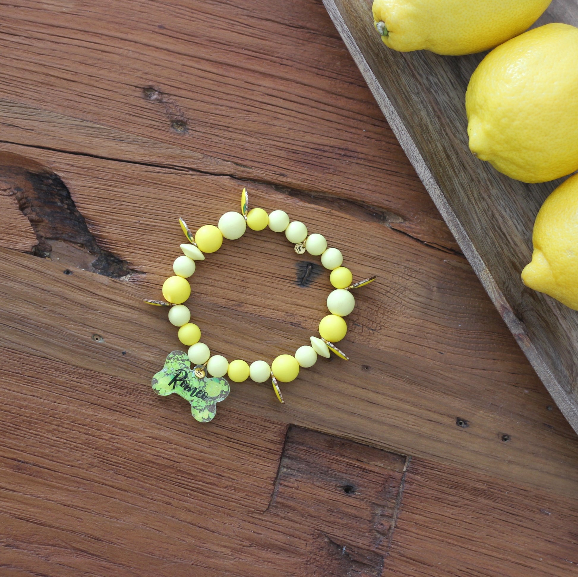 Inspirado en los limones de nuestra tierra, el collar Limoncico combina tonos amarillos vibrantes que evocan la frescura de la huerta y la luz del Mediterráneo.