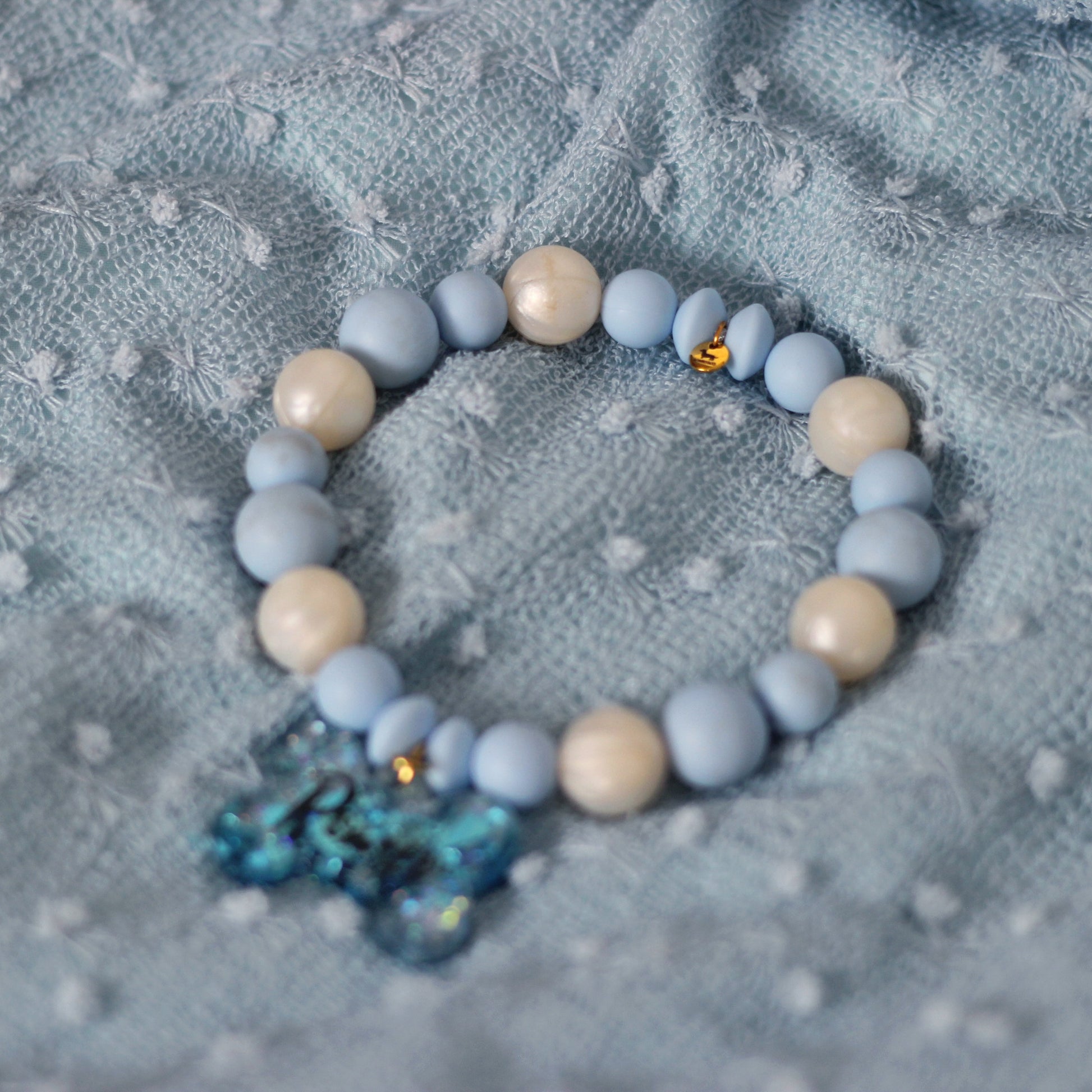 El collar Mediterráneo nace de uno de los rincones más bonitos de nuestra tierra: La Manga del Mar Menor. Con esferas en tonos azul profundo y blanco espuma, esta pieza evoca los contrastes del paisaje costero, los paseos al atardecer y la brisa salada que acompaña cada verano.