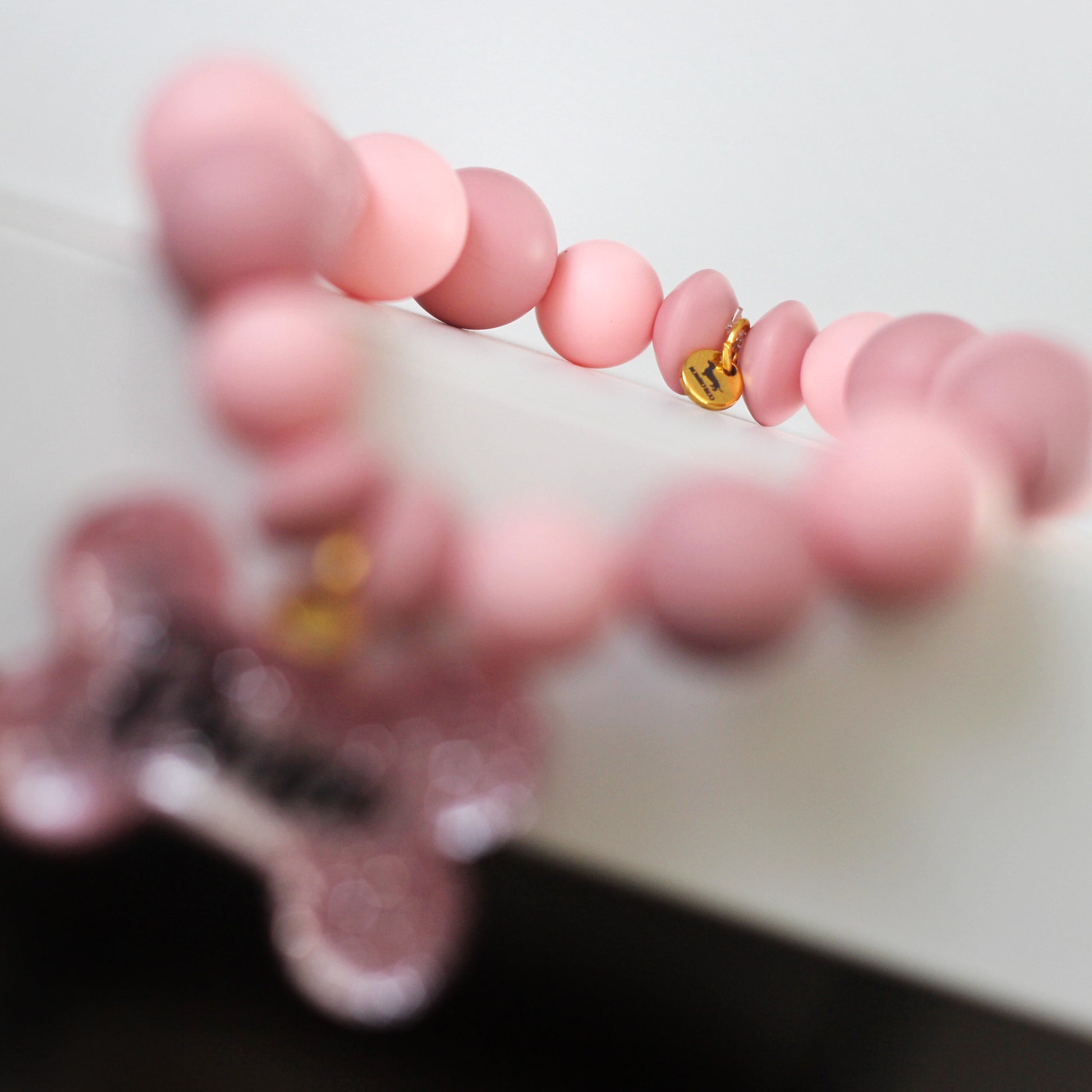 El collar Pétalo está inspirado en la suavidad de las flores y la dulzura de quienes caminan a nuestro lado con amor incondicional. En tonos rosa empolvado, con esferas de acabado pulido, esta pieza irradia ternura sin perder elegancia.