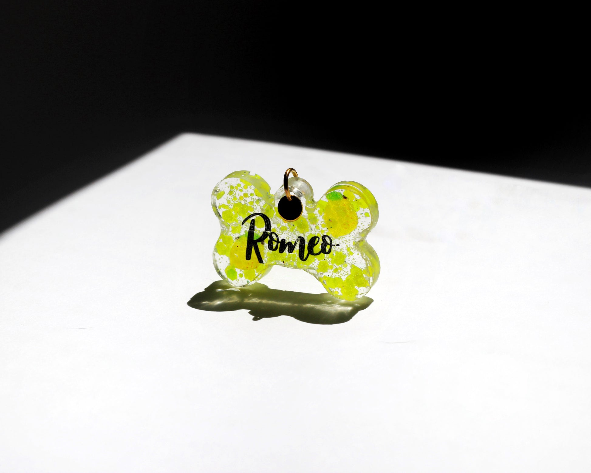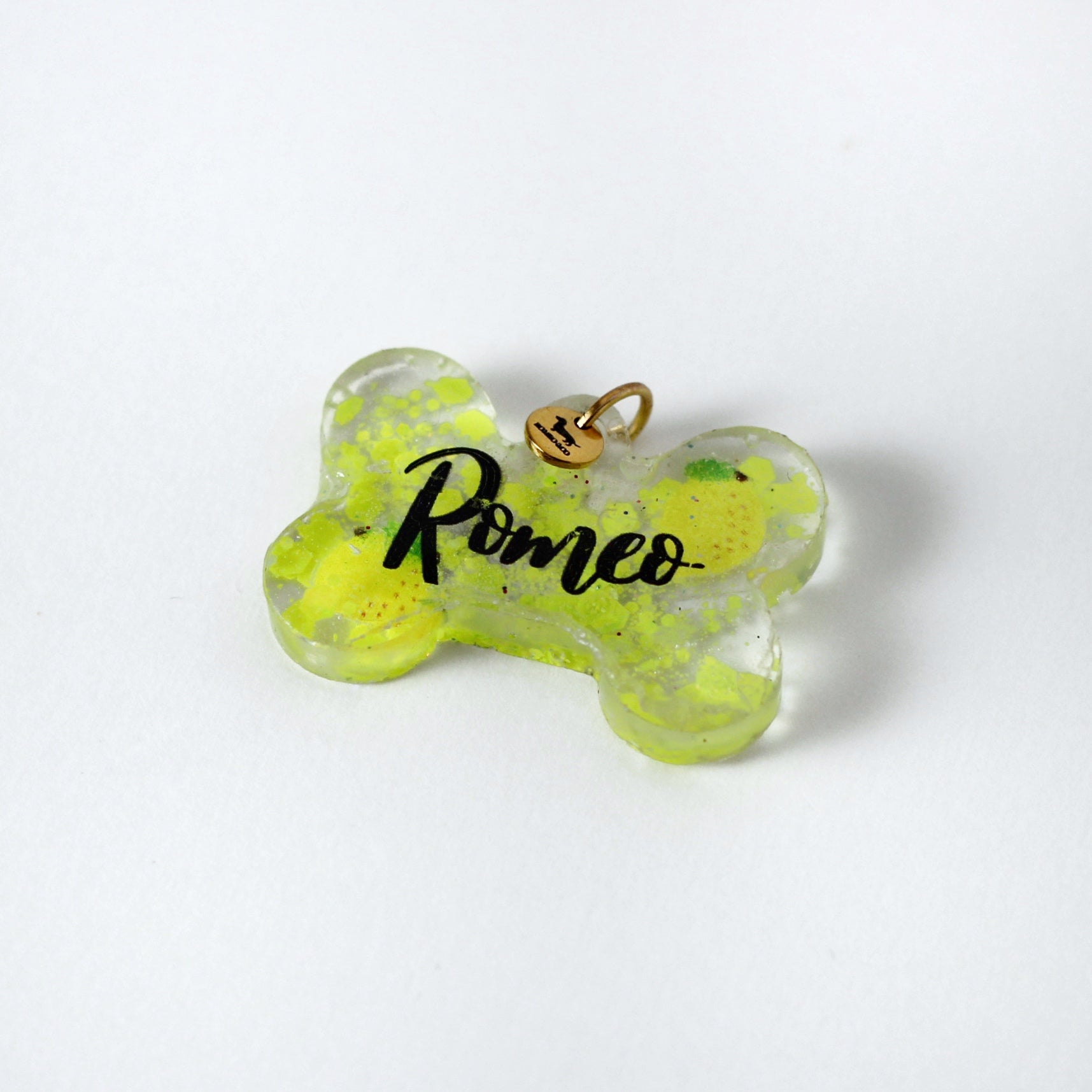 Esta joya no solo identifica: cuenta una historia. Con sus colores cítricos y su brillo natural, la joya Limoncico pone el acento murciano allá donde va tu perro.